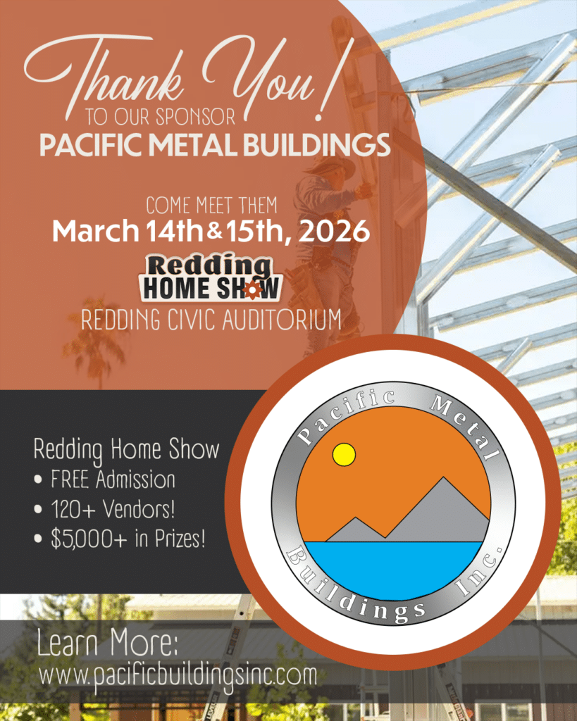 If you’re attending the Redding Home Show, be sure to stop by the Pacific Metal Buildings booth to learn more about their customizable steel building solutions.